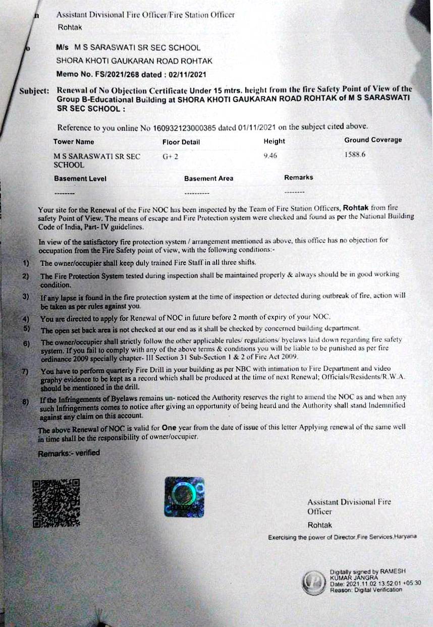 COPY OF VALID FIRE SAFETY CERTIFICATE ISSUED BY THE COMPETENT AUTHORITY |
