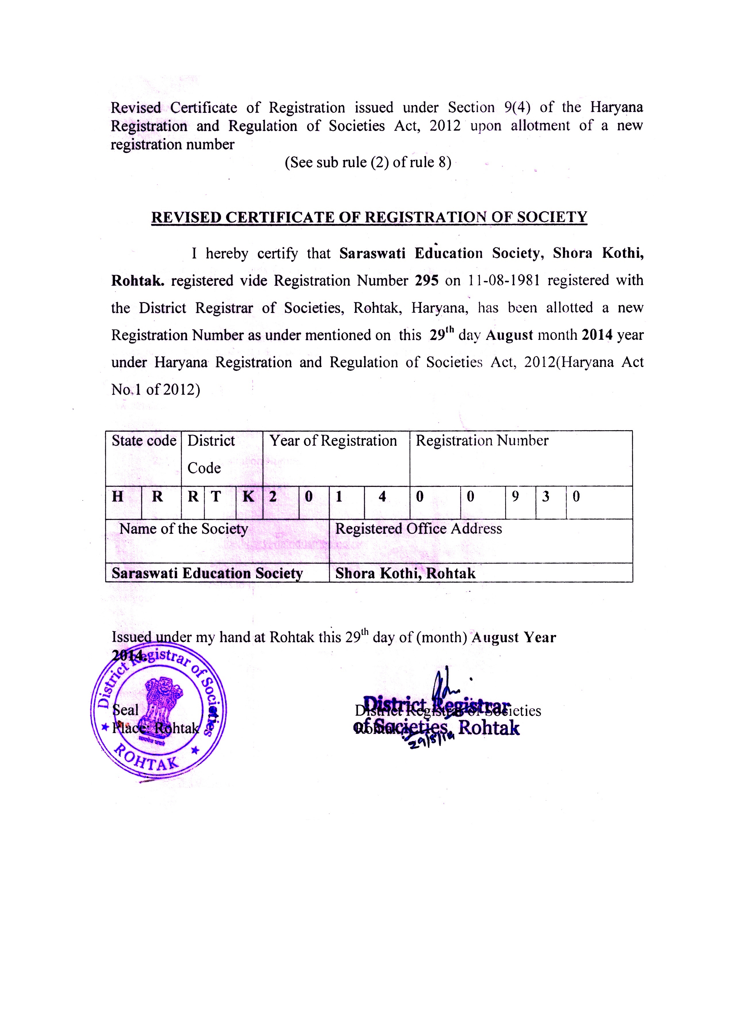 COPIES OF SOCIETIES/ TRUST/ COMPANY REGISTRATION/ RENEWAL CERTIFICATE, AS APPLICABLE |