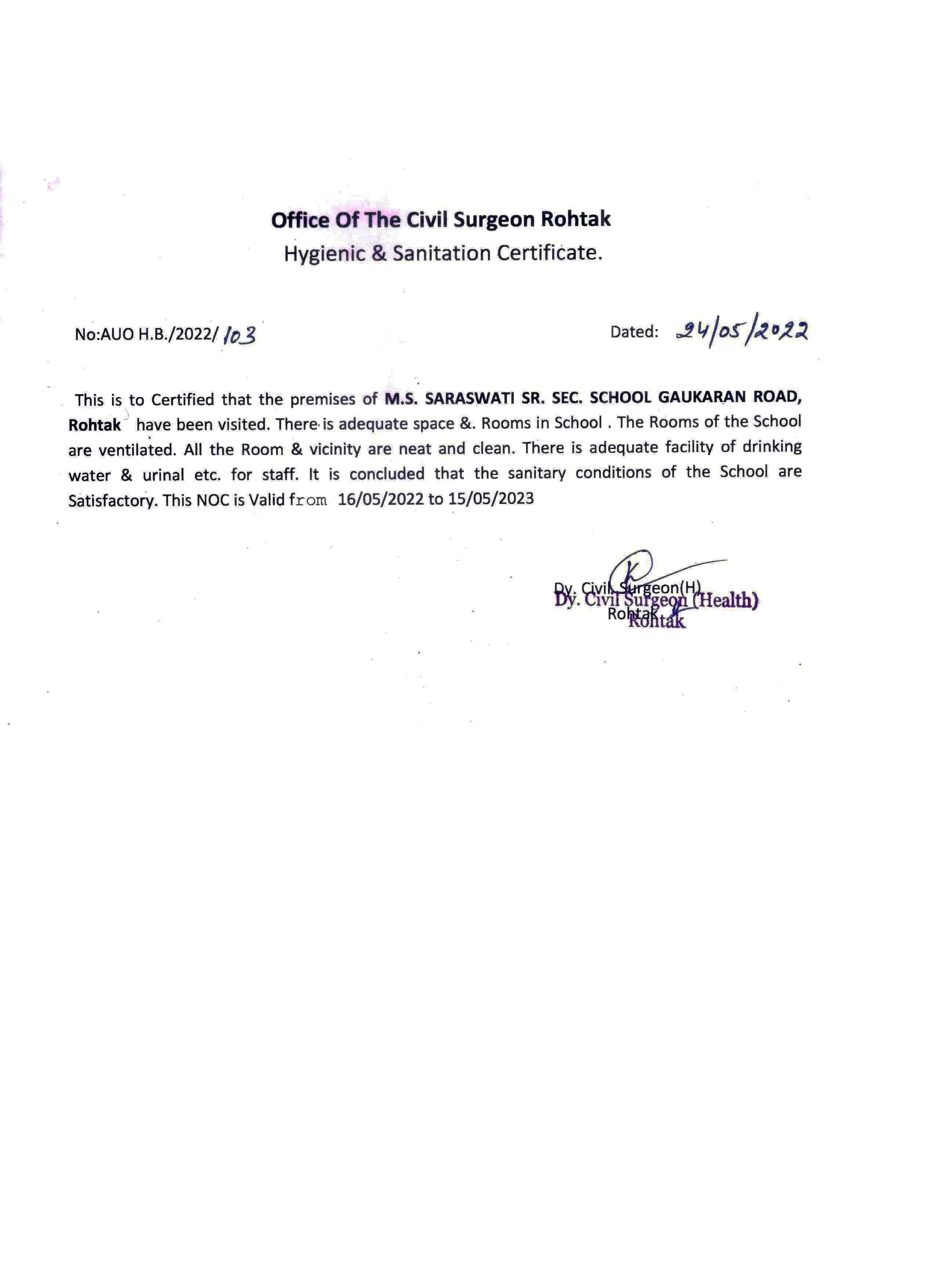 COPY OF THE DEO CERTIFICATE SUBMITTED BY THE SCHOOL FOR AFFILIATION/ UPGRADATION/ EXTENSION OF AFFILIATION OR SELF CERTIFICATION BY THE SCHOOL |